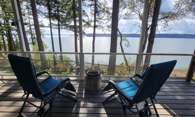 - Waterfront Cabin on Camano Island with hot tub and outdoor patio.