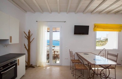 If your dreams of Mykonos include a jaw-dropping view of an unspoiled beach, then welcome to your unforgettable holiday experience at this charming mesonnaite. Just 10 minutes outside of the busy town of Mykonos, away from the busy crowds, the quiet beach of Agios Sostis and this beautiful apartment await your arrival.