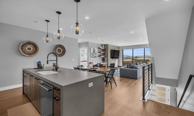 Welcome to the most incredible views in town in your chic mountain hideaway in Hideout, just 10 minutes from Park City. This modern 3-bedroom, 3.5-bath townhouse offers stunning views of the mountains and Jordanelle Reservoir, providing a peaceful retreat for up to 8 guests. With a spacious, multi-level design, it's perfect for those seeking a quiet escape while remaining close to all the action.