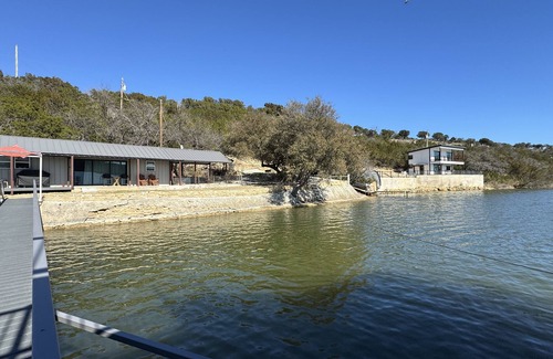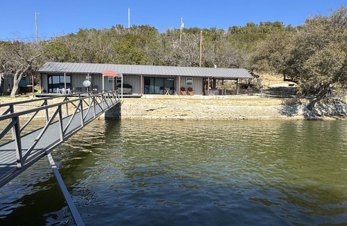 This home is nestled in a quiet cove that is perfect for relaxing and enjoying the lake, and is a quick boat ride to Sandy Beach or Possum Kingdom’s famous Hell’s Gate. Whether you want solitude and views or people and excitement, this home is the ideal location. The home’s footprint is small, but you won’t feel it because of the expansive lake views and the open outdoor area. Inside the home, you will find a master bedroom with a queen bed and sliding glass doors to enjoy the view and a second bedroom with a queen and twin bed for extra sleeping space. The living room also features expansive views with sliding glass doors. The kitchen has all conveniences of home, and a full-size washer and dryer make dealing with lake clothes a breeze. It also features a brand new two-level double slip dock. Nearby are Fox Hollow Restaurant and Cantina, Possum Hollow Restaurant, boat ramps, and the West Side Mercantile. For larger groups, our next door house can be rented as well. Look up Property ID 4786143 to view our additional home for rent.