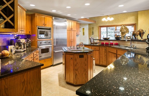 Secluded On The Rims Overlooking Alkali Creek. Complete Privacy.The main residence is over 5000 sq ft, Dramatic Open Floor Plan W/Walls Of Glass and Radiant Floor Heating. Many Upgrades - Remodeled Master Bath, Tile, Granite, Viking Stainless Appliances, , Recessed Lighting, Rebuilt Redwood Decks (3), Beautiful 30' Skylight, throughout Master quarters. Indoor Jacuzzi room, because of the Ventilation system this room also can serve as your cigar room,Smoking only allowed in this room! Pool table.
