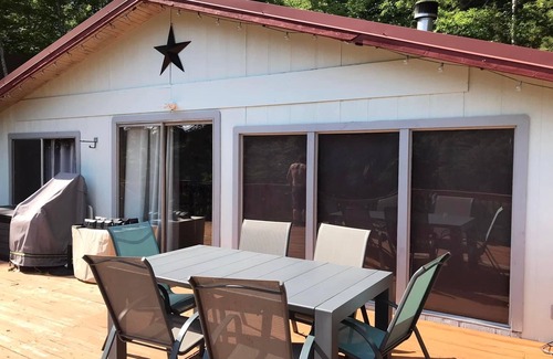 - Cozy A-frame home with fire pit, deck, pickleball court, and covered boat slip