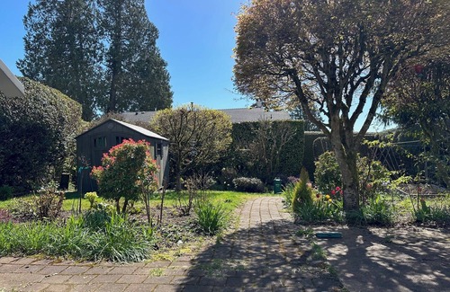Relax at this peaceful place. A cozy home in a quiet and beautiful area, walking distance to beach, shopping centre, transit and parks. This suite has brand new fireplace, cable TV and stove.1 queen bed and a queen size sofa bed. A spacious living room can be both a relaxing place to watch TV, or home office, or have a delicious meal with friends in the dining area. Backyard offers beautiful flowers in Spring and summer time, including roses, hibiscus, peony. Easy to bus stop or highway 1.