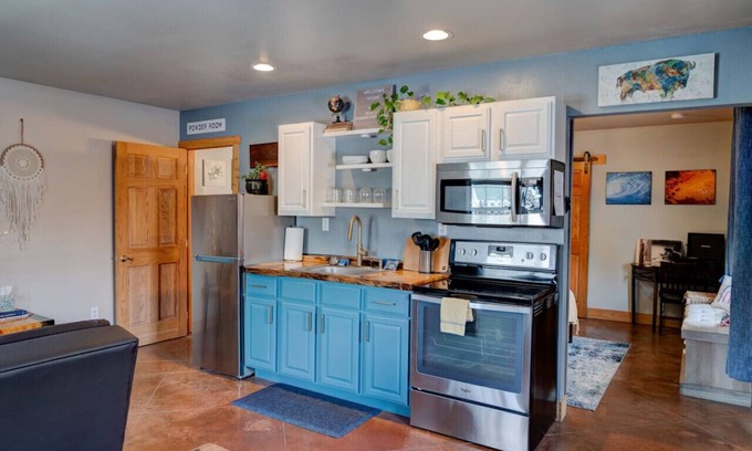Come relax in our newly updated and stylish guest suite, complete with a handmade kitchen counter and coffee table made from locally cut pine slabs, a handmade oversized barn door, locally created art, a functional layout and plenty of natural light!