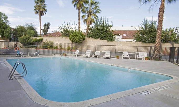 Suburban motel with a 24-hour front desk and an outdoor pool