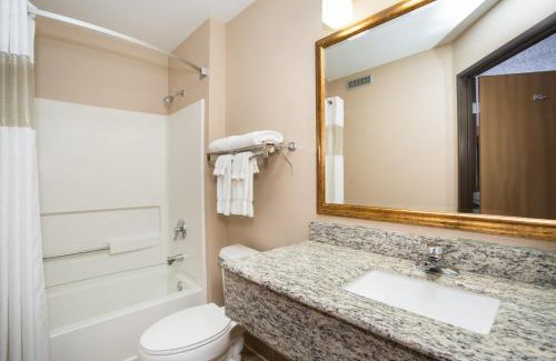 This hotel is located off Interstate 29 just a 15 minute drive from Central Sioux City. Features include an indoor heated pool and a deluxe continental breakfast. Free Wi-Fi is provided. A microwave and a small refrigerator are found in each simply decorated room at the AmericInn Lodge and Suites. All rooms come with cable TV and tea/coffee-making facilities. Guests of the Sioux City AmericInn Lodge and Suites can enjoy a quick meal option from the on-site vending machines. A 24-hour front desk and a business center are offered for added convenience. The Argosy Casino is a 10 minute drive away. The Sioux City Art Center is 5 miles from the property.