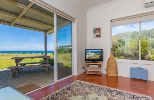 Timber beachfront cottage with one queen bedroom, en suite, reverse cycle air conditioning, ceiling fan, limited cooking facilities, (no oven or hotplate), electric frypan, two door refrigerator, communal BBQ , large living area, LCD TV, DVD player, CD sound system, covered verandah facing Southern Ocean, rear deck with country views and direct access to our sandy beach, rockpools and lagoons. The Southern boundary of our property is the mighty Southern Ocean.
