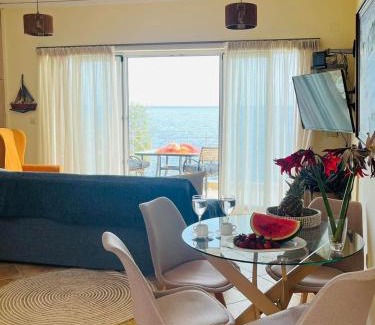 Offering a private beach area, Ammoudeli Apartments provides accommodations in Plomari. This beachfront property offers access to a balcony. The apartment offers sea views, a sun terrace, and free Wifi is available throughout the property. The units come with tiled floors and feature a fully equipped kitchen with a microwave, a dining area, a flat-screen TV with streaming services, and a private bathroom with shower and a hair dryer. A toaster, a fridge, and kitchenware are also offered, as well as a coffee machine and a kettle. At the apartment complex, units are equipped with bed linen and towels. Continental and Italian breakfast options with warm dishes, fresh pastries, and champagne are available. Ammoudeli beach is a few steps from the apartment, while University of the Aegean is 26 miles away. Mytilene International Airport is 27 miles from the property, and the property offers a paid airport shuttle service.