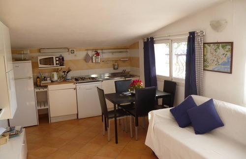 Entrance, living room-kitchen where there is a double sofa bed, double bedroom, bathroom with shower, large terrace where you can smoke, private parking space. Small pets are allowed but must not be left alone in the house. it should also be noted that the house, although independent, has some external parts in common with other houses and is therefore only partially fenced. The daily cost for each animal is € 5 to be paid upon delivery of the keys. An extra single bed can be added to the bedroom - on the terrace it is possible to turn on the barbecue to taste the grilled meat and fish cooked to taste