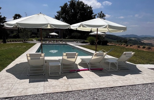 The 42 sqm apartment has free access to the outside both from the living room and from the bedroom, both protected by a railing. The car can be parked outside and you have free access to the large garden, where you can jog along a defined path, or sit&loll down while contemplating hills and vineyards, as well as dive into the 15mtsx 5mts private swimming pool where hosts and guests only have access. If previously agreed, you can also use an indoor gym equipped with a treadmill, some weights and an elliptical