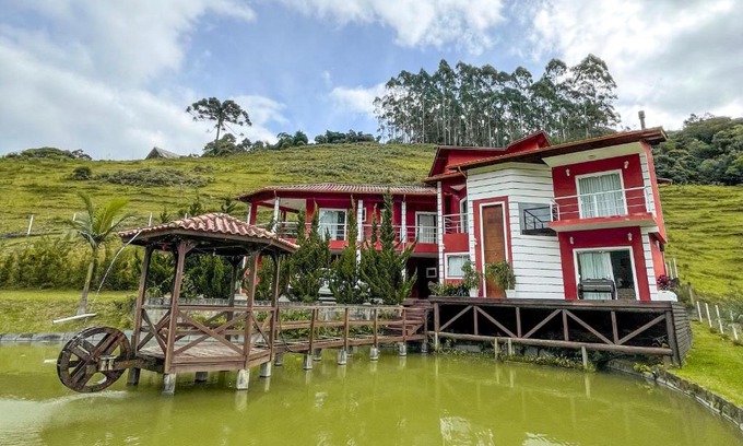 Offering a garden, AMPLA CASA DE CAMPO - Afaven provides accommodations in Aguas Mornas. This property offers access to a patio, a pool table, free private parking, and free Wifi. Guests can use barbecue facilities. Providing a balcony and mountain views, the spacious villa includes 4 bedrooms, 2 living rooms, flat-screen TV, an equipped kitchen, and 5 bathrooms with a shower. Guests can enjoy a meal on an outdoor dining area while overlooking the lake views. Additional in-room amenities include fruit. You can play table tennis at the villa. Guests at AMPLA CASA DE CAMPO - Afaven can enjoy fishing and hiking nearby, or make the most of the sun terrace. Florianopolis-Hercilio Luz International Airport is 52 miles away.