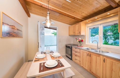 Get ready to fall in love with Villa Amygdalia! This beautiful villa measures 75 sq.m and features three bedrooms with double beds, each with views of the pool and mountainside. The villa features an elegant and modern bathroom with a bathtub, a cozy living room with a double sofa and a fully equipped kitchen with a dining area providing all the comforts of home. The prominent use of wood in the villa's design adds to its rustic charm, creating a warm and inviting ambiance.