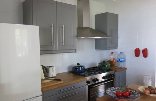 Kitchen of 10 m2, modern equipped, Stove 5 gas rings, Oven, Microwave, Refrigerator-freezer, Dishwasher, Washing machine, Kitchen table. (Kitchen and tableware supplied, Ironing board, Iron, Vacuum cleaner, Fire extinguisher, Emergency care kit)
