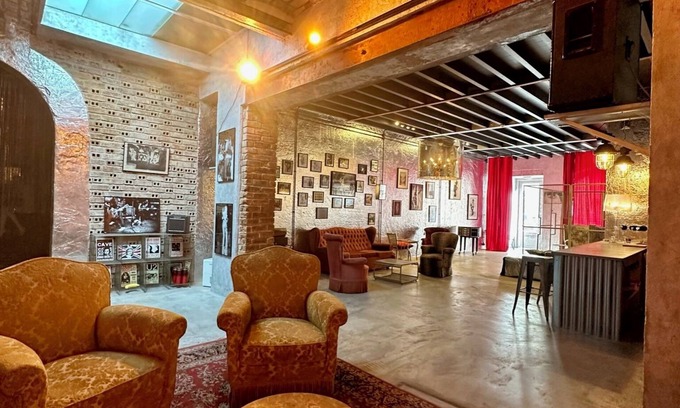Located in a old factory, with its original features, such as the old brick oven, the mosaics on the floor, the vaulted ceilings, etc...