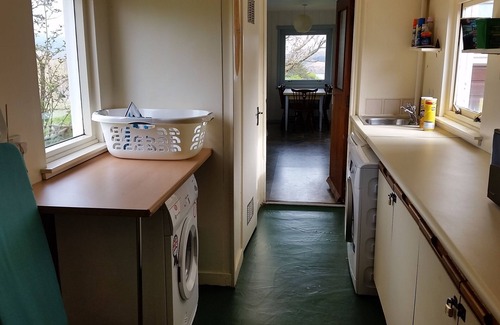 The utility room contains a dish-washer, a washing-machine, and a dryer.