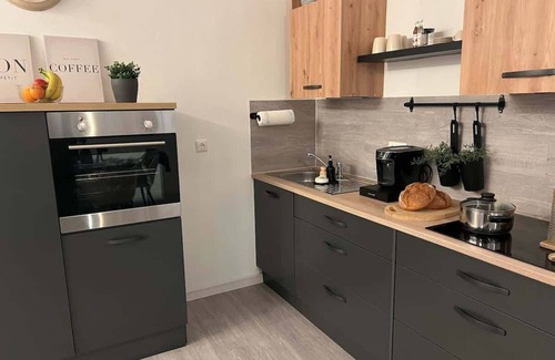 Modern vacation apartment with rain shower and open kitchen in Lüdge.