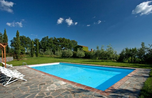 All of il Diaccino rooms are furnished with a taste for refined elegance. The entrance leads to the spacious living room that has large windows overlooking the garden and the unique view. There are two very comfortable sofa beds, armchairs, tables, lamps and a bookcase. Also on the ground floor, guests enjoy a large fully equipped kitchen/dining room with a door leading onto the garden.Before going upstairs to the bedroom, you find the bathroom with shower. Also the double bedroom with closet enjoys the beautiful view. Outdoors a covered private terrace with dining facilities. The pool (not heated, usually open end May to end September) may be shared with guests at Le Diacce (VRBO listing 281961). A tall thick edge separates il Diaccino from Le Diacce. Privacy is assured.