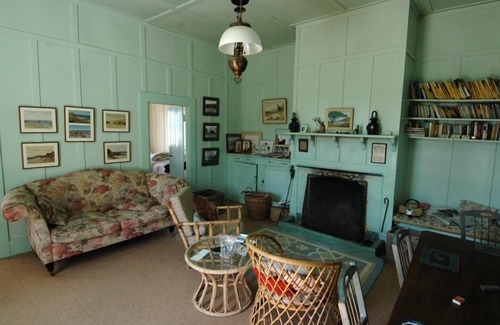 There's a generous living room filled with historic photographs which has a big open fire; a roomy sun porch with great views out to sea and a large hall with a table tennis table. There's one bathroom with a bath and overhead shower and another hot shower outside.