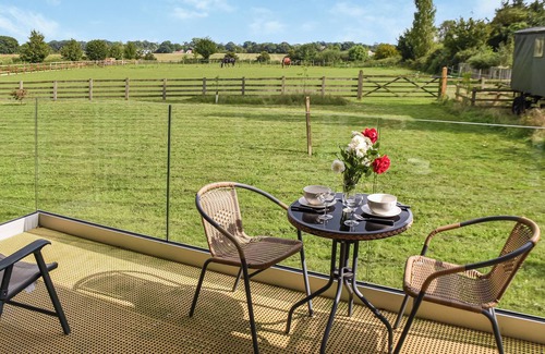 Separate Toilet.. Gas central heating, gas, electricity, bed linen, towels and Wi-Fi included. Electric vehicle charging. Travel cot and highchair available on request. Balcony with outdoor furniture. Acres of meadows. 1 dog welcome, to be kept on a lead at all times (livestock nearby). Private parking for 2 cars. Wheelchair accessible. No smoking.. As you arrive, you are immediately greeted by breathtaking views. The landscape is a tapestry of vibrant greens and the meadows are home to horses grazing contentedly. This countryside haven offers not only stunning views but also a sense of peace and comfort. The property is set all on one level with a ramp for easy access. Inside, the open-plan design creates a spacious and inviting atmosphere, perfect for socializing and enjoying the views. Windows and sliding doors allow plenty of natural light to flood the interior and the glass veranda invites you outside to relax and enjoy. With stables and grazing available, and opportunities of good hacking, this is a great place to bring your horse (by prior arrangement and an extra cost with owner).
