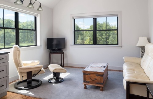 This newly built modern farm house at beautiful Parkhill Farm is just minutes from Middelebury College. Two bedrooms, two full baths (one with a deep soaking tub)! Sleeps 4. Living room, kitchen, washer/dryer and two indoor parking spots round out this private house. Beautiful sunset views and acres of trails offer the idyllic Vermont experience. Enjoy hiking, cycling, cross country skiing or settle down with a good book. You can't beat Parkhill Farm!