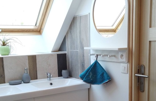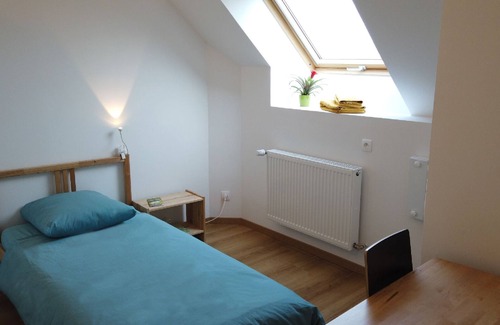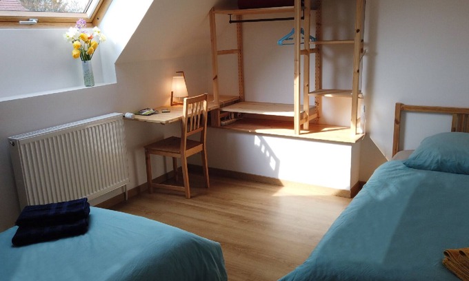 In a completely renovated old farmhouse, the Géode suite, on the 1st floor, has 1 bedroom with a double bed and its shower, 1 bedroom with 2 single beds, 1 bedroom with 1 single bed, with a toilet and a separate bathroom.