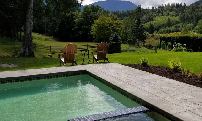 The 20 x 40 foot pool is an oasis during the summer heat waves! (The pool and it's hot tub are closed October 1st to May long weekend) The second hot tub is under the sundeck, overlooking the property with mountain views is always available, heated year round!