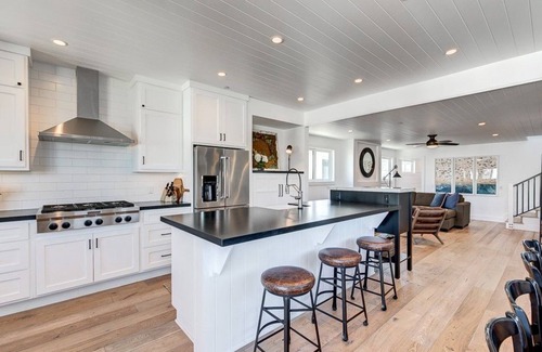 Come experience the best of modern indoor and outdoor coastal living in our beautiful oceanview accommodations, just 6 houses from the great recreational beach at 38th Street. By combining the Downstairs Unit (1 bdrm 1.5 bath) and the larger multi-level Main House (3 bdrm, 3.5 bath), larger family groups are able to enjoy an amazing home in an equally amazing beach location! Here's what you'll find: