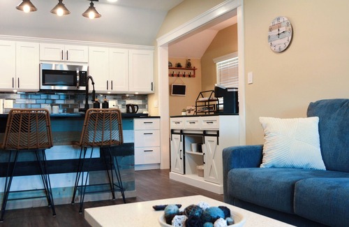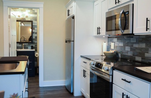 This brand new guesthouse is an oasis in the heart of the city. The upstairs abode includes one bedroom with a cute workspace (and fast wifi), a stocked kitchen, and a cozy living room with all new furniture. Outdoors is a smokeless firepit.