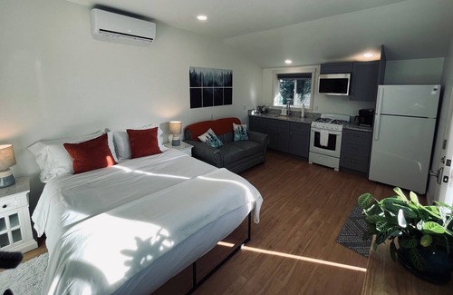 - Bright & private studio guesthouse with full kitchen and fireplace