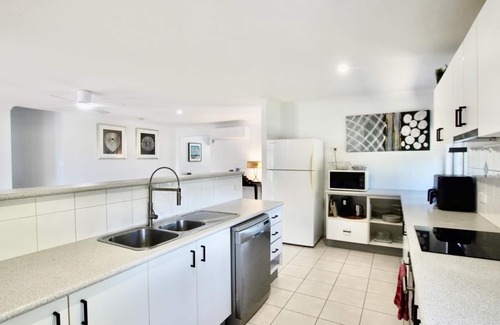 Indoors you can rest with tastefully decorated modern furniture and air conditioned comfort in the main living area with ceiling fans in all four bedrooms.
