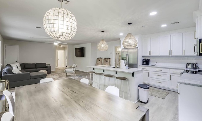 Come ANCHOR AWAY at this secluded cabin in the woods by Lake Tenkiller. Located on over 2 acre lot surrounded by trees. Less than one mile from Carlisle Cove boat ramp. This small 5 bedroom 2 bathroom bungalow sleeps 16 of your favorite people. Fully remodeled home with open kitchen concept and brand new appliances make for an upscale get away. Come 'Anchor Away' at this popular Lake Tenkiller spot. Over a hour away from Tulsa, 45min drive to floating Illinois River, and less than 1 mile to public access on Lake Tenkiller.