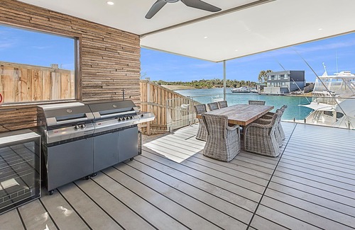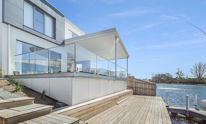 This stunning north-facing contemporary designed waterfront home is located with the best access to the Gippsland Lakes. This home features 2 master bedrooms and 3 secondary bedrooms which comfortably sleep 10 guests and boasts a waterfront deck overlooking the canal and the magnificent Lake King with views across the mountains and beyond.
