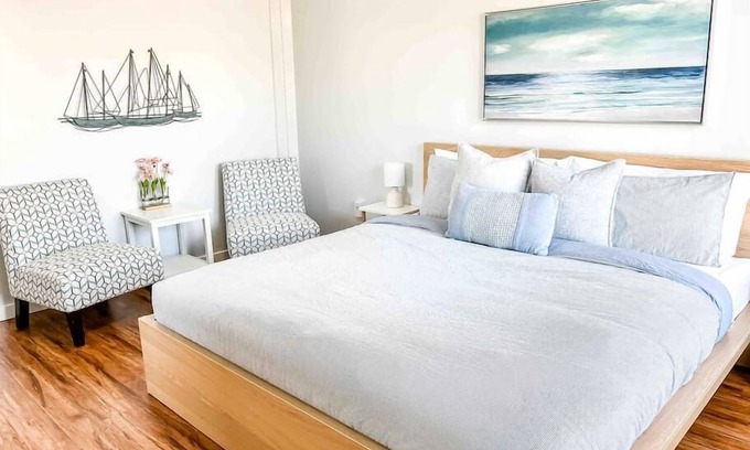 Newly remodeled home just a short walk to the Lake, Bars & Restaurants! 2 bedrooms & 2.5 bathrooms with a cozy nautical design. Fully stocked kitchen and spacious living room are perfect for vacationing with family!