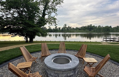 Outdoors, the dock invites relaxation by the water. Gather around the wood fire pit for memorable nights under the stars.