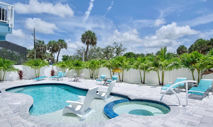 🌊Anchors Down | Luxury 5BR w/Private Pool, Spa + Game Room | Steps 2 Beach🏖️ | House in Fort Myers Beach