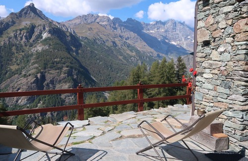 Rustic chalet "Ancienne Bergerie", 1'900 m a.s.l from the 17th century, renovated in 2015. 5 km from the centre of Valtournenche, 15 km from the centre of Breuil Cervinia, 25 km from the centre of Chatillon/Saint Vincent, in a secluded position on a slope. For shared use: property, terraced garden (not fenced), meadow. Motor access (150 m via unmade road). In Winter: please take snow chains. Parking at the house, in winter 200 m. Supermarket 5 km, restaurant 3.2 km, bar 1.6 km, bus stop "Valtournenche" 5 km, railway station "Chatillon" 25 km, indoor swimming pool 8 km. Golf course (18 hole) 15 km, gondola lift 7 km, slopes 3.5 km. Hiking paths: Alta Via n°1 della Valle d´Aosta 50 m. In winter, snow boots, backpack and winter sports clothing are recommended.