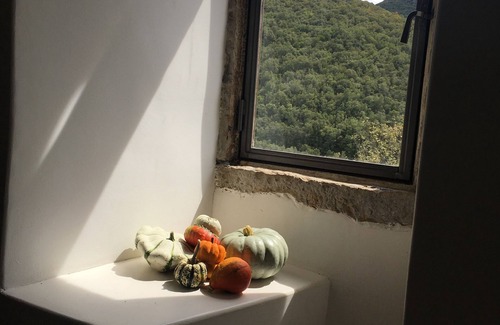 The property totals 20 hectares, with a river, a small meadow, oaks, flowers of all kinds, and a 10-minute walk on the plateau of the mountain, a chestnut. Many walks to do, without taking the car.