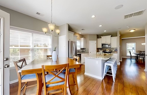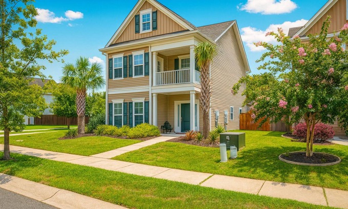 Enjoy a stylish and comfortable stay at this chic Charleston home, perfectly located in quiet Johns Island—just 20 minutes from downtown and local beaches. Family- and dog-friendly, this retreat offers a spa-inspired primary suite, a fully fenced yard, cold A/C, a gourmet kitchen, and high-speed WiFi. Ideal for couples, families, or remote work, with everything you need for a relaxing Lowcountry getaway.