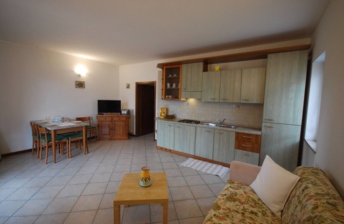 Nestled in the tranquility of Prabione, a hamlet of Tignale, and just about 7 km from Lake Garda, the “Angelica 3” apartment offers a relaxing stay with a spectacular view of the lake and the majestic Monte Baldo. Tastefully furnished and carefully designed in every detail, this two-room apartment of approximately 50 sqm is the perfect choice for those looking for a vacation immersed in nature and comfort. It can accommodate 2 to 4 people.The cozy interior features a bright living room with a kitchenette equipped with a 4-burner stove, extractor hood, toaster, and German coffee machine, along with a comfortable double sofa bed. The spacious bedroom offers a relaxing atmosphere, while the modern bathroom is fitted with a shower. The real highlight of the apartment is the furnished balcony, ideal for admiring the views of the historic center, Lake Garda, and the surrounding mountains.Guests have access to Wi-Fi in every room and an outdoor parking space. Bed linen and towels are included in the price, and pets are welcome free of charge.A bar and a small grocery shop are just a short walk away. For those interested in local heritage, the Alto Garda Park Visitor Center offers a fascinating insight into the evolution of Lake Garda. In just a few minutes by car, you can reach Gardola, a charming village with restaurants, pizzerias, a pharmacy, and other essential services.Sports enthusiasts will find plenty of activities nearby: the municipal swimming pool, accessible free of charge for our guests from mid-June to the end of August, a tennis court about 2 km away, and the possibility of renting mountain bikes and e-bikes at Tabaccheria Ferrero. For those who love water sports, sailing and windsurfing are available about 7 km away at the Port of Tignale, while golf lovers can visit Golf Bogliaco, about 13 km away.Angelica 3 is the perfect retreat for those looking to enjoy a vacation filled with nature, sports, and relaxation, all while taking advantage of a privileged location with an unforgettable view.Upon check-in, our guests will receive two cards, the TIGNALE CARD and the THEATER HOME CARD, which offer various discounts, such as:• Guided hikes• Free shuttle service to and from the beach from Easter to October• Free entrance to the municipal swimming pool (June to August)• Discounts at restaurants, bars, and more.