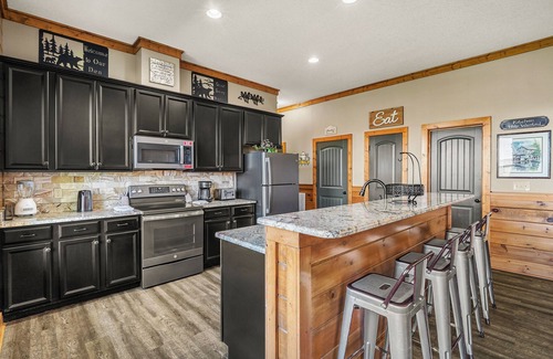 Located in the scenic hills of Sevier County, just 12 miles from Dollywood and 16 miles from Gatlinburg, Angel’s Overlook is a 3-bedroom, 3-bathroom luxury cabin offering stunning views, upscale amenities, and space for up to 12 guests. Set in the private Summit Ridge Resort, this multi-level retreat is ideal for families, groups, and even wedding parties.