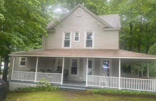 This house features, a modern kitchen with all amenities, wrap-around porches , Weber grill, living room/dining room/ Vermont stove, WI/FI./ Internet/ washer/Dryer. Also have ample parking.