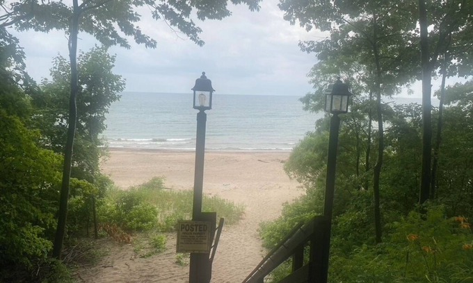 Beautiful sunsets and private stairs right down to our beach which also boasts a sandbar. Our view of lake is spectacular and the beach is extra large for family enjoyment and game playing