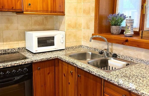 This beautiful house, fully furnished, has 2 double bedrooms, one full bathroom with shower, fully equipped kitchen, living room with fireplace and acces to the private yard with beautiful panoramic views of the mountains. Swimming pool and padle court