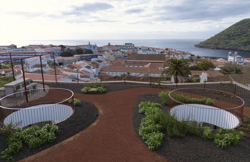 The AngrA+ complex arose from an ancient building from 16th century, located in the center of the city of Angra do Heroísmo, within the privileged area of Unesco World Heritage Site. AngrA+ includes a main house, which is a unique, secular, classified and protected historic building, and includes a new ground floor construction integrated in the outdoor surrounding garden, overlooking the edge of the land and facing an unobstructed view to the ocean and the city landscape.