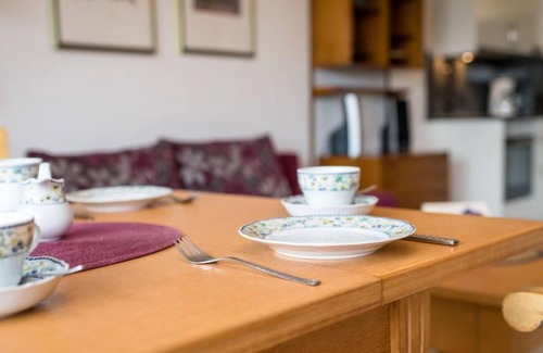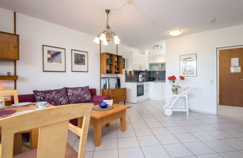 "Ankerplatz (B313)", 2-room apartment 56 m2 on 3rd floor, west facing position. Living/dining room with 1 double sofabed (140 cm, length 200 cm), satellite TV (flat screen), hi-fi system. Exit to the balcony. 1 room with 1 double bed (2 x 100 cm, length 200 cm). Kitchenette (oven, dishwasher, 4 ceramic glass hob hotplates, toaster, kettle, microwave, electric coffee machine). Shower/WC. Balcony furniture. Facilities: iron. Internet (WiFi, free). Please note: non-smokers only. Smoke alarm.
