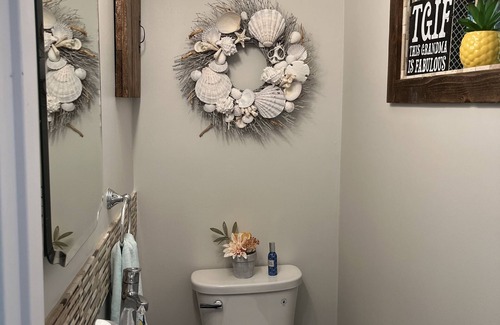 The Lakehouse is on a peninsula with water on 3 sides, a private Sandy beach on the no wake side - walkout lower level. Completely renovated, in 2024, fresh, modern, open concept.