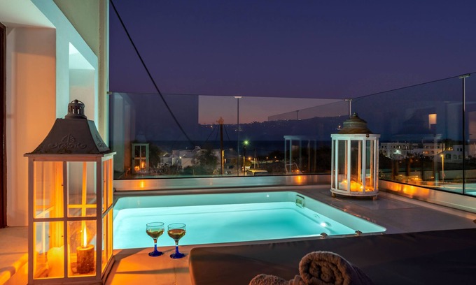 Best-rates for the Monolithos villa starts from $315 per night with includes Balcony/Terrace, Wellness Facilities, Hot Tub, View, Ocean View, Parking, Security/Safety, Bedding/Linens, Child Friendly, Internet, Kitchen, Laundry, Oceanfront, Fireplace/Heating, Air Conditioner, TV with all other amenities. Perfect for Weddings is committed to ensuring every guest experiences a comfortable and extraordinary stay, whether planning a romantic getaway, a honeymoon, a pet-friendly stay, or celebrating with the entire wedding party.