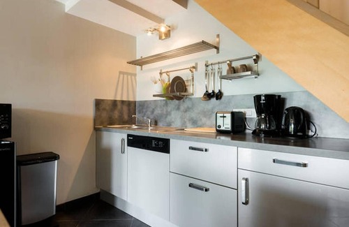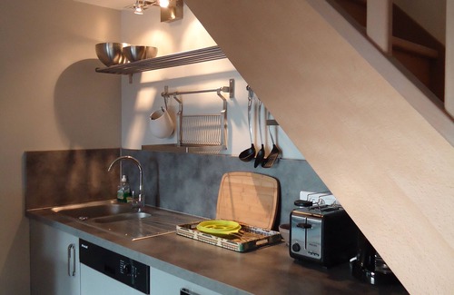 4 gas burners, dishwasher, extractor hood and everything you need for cooking.