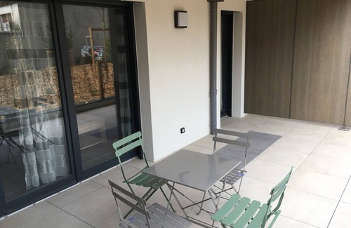 New apartment on the ground floor with large terrace, ideally located in the center of Annecy. Offers easy access to all sites and amenities
