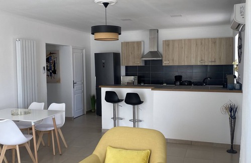 Annex of Provencal farmhouse located in the heart of the Chateauneuf du Pape estates. 5 minutes from the ancient theater of Orange. Proximity, Ardèche, Luberon, Mt Ventoux, wine route, 1 hour from the sea. Horse riding, tennis, golf.